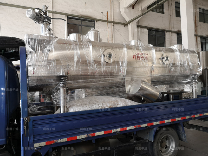 物料自進料進口進入機內,在振動力作用下,物料沿水平面流化床拋擲,向前連續運動,熱風向上穿過流化床同濕物料換熱后,濕空氣經旋風分離器除塵后由排風1:3排出,干燥物料由排料進口排出。